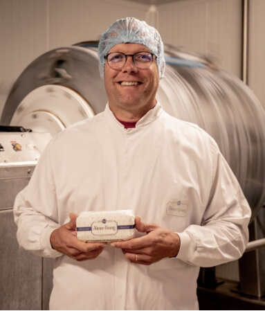 À la laiterie du Vieux-Bourg, Éric de Sonis perpétue depuis 1956 un savoir-faire artisanal unique : un double passage en baratte qui donne au beurre une texture fondante et un goût intense. Moulé, découpé et emballé à la main, ce beurre local est issu de lait collecté chez des éleveurs engagés, comme Florentin Josse. À la chocolaterie, nous l’avons choisi pour sa qualité et son ancrage territorial, qui subliment nos créations.